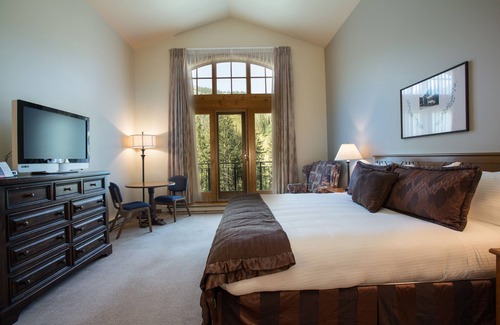 An outdoor pool and a hot tub are on site. Other recreational amenities include ski-in/ski-out access, a sauna, and a fitness center.