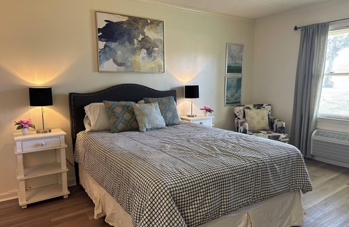 Each room in the hotel wing has a queen bed, and its own ensuite bathroom. Bedrooms are equipped with a TV, mini fridge, microwave and coffee maker. Bathrooms are newly renovated with a spa like walk in shower with rain shower head.Each room has an individually curated theme. These include Garden Room, Beach Room, Parisian Room, Lake Room, Ty Cobb Room, Provence Room, Safari Adventure Room, and Asian Room.