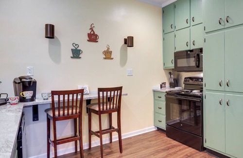 KITCHEN: Electric stovetop, microwave, full fridge & freezer, bar seating, Keurig coffee maker, knife set, dishwasher, blender, spices, toaster, cooking basics, dishware & flatware