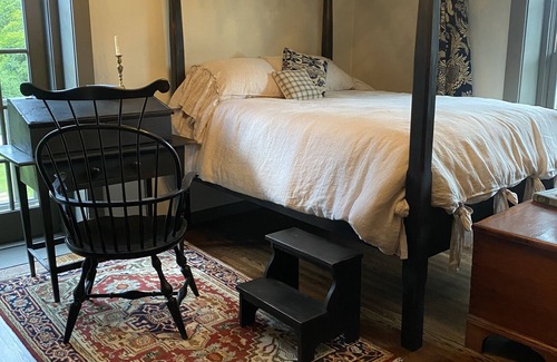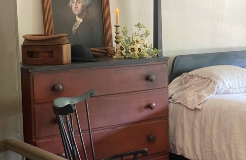 Feel the simplicity of the 1800's in our 1850 stone farmhouse decorated with colonial American style antiques & furnishings. Areas to share are an authentic tavern room complete with a cage bar and a fully equipped kitchen tucked behind it, a beautiful Library room w fireplace and game table to enjoy some quiet, relaxing moments and a dining room w additional sitting area. A laundry laundry room is available to guests renting for a week or more. There are currently 3 Bed Chambers available with private bathrooms. A courtyard with patio for outdoor dining is in a beautifully gated area to the entrance of the farmhouse. Recently completed is Olde Homestead Cottage located 10' from the entrance to The Inn. It was the original summer kitchen to the farmhouse. It is 400 Sq ft with a double bed and a large sitting area with a gas fireplace. It's very cozy & quaint. It is our pet friendly unit & very private.