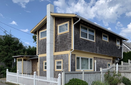 Enjoy a relaxing ferry ride to Oak Bluffs and its picturesque surroundings. Once your ferry ride ends, you’re steps away from home! Your vacation stay will be unforgettable in this charming cottage located in back of the elegant, enchanting, and historical bright yellow Victorian home, which was built in the 1950s. Speaking of ocean views….enjoy the benefits of having an ocean view steps away from your back yard! Being on vacation in Martha’s Vineyard in the heart of down town on a main street has its privileges! As the cottage is located on the main street, Kennebec Avenue, you can see the entire ocean; only a stone’s throw away from this lovely fully furnished cottage, which has 2 full bedrooms, 2 full private bathrooms (upstairs), and 1 powder room (located on the main level). The cottage comfortably sleeps four people; two couples or a family of four. There is one parking space available to you next to the cottage on the property. While sitting in the back yard sipping on your favorite glass of wine, enjoy a lovely meal you have prepared on the gas grill which is available to our guests. The cottage is available for year round rental with central air and central heat for your convenience.