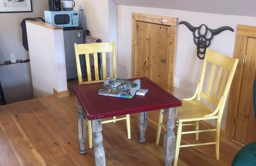 Western Montana loft overlooking Philipsburg and Discovery Ski/Bike trails. Fishing, hunting, 4-wheeling all close by. 2 blocks to historic downtown and P'Burg Brewery. Cozy open living w gas fireplace. Mini-fridge, coffee maker and hot pot for tea, oatmeal and soups.