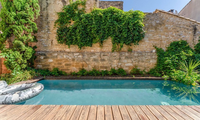 The Jasmin suite has a shared swimming pool, Wi-Fi and air conditioning | Apartment in Collias