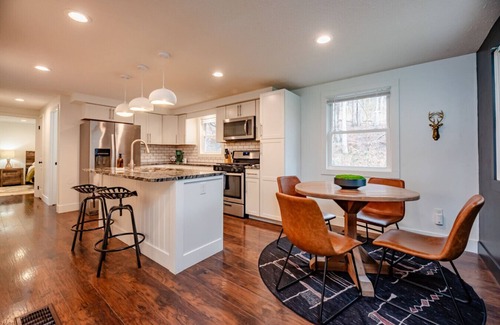 This peaceful setting is exactly what you are looking for. Hidden away on a private drive deep in the hills of Bristol, you will find the rest and relaxation you've been craving - The Johnson Chalet! Two spacious bedrooms, one full bathroom, full kitchen and cozy living room are just some of the amenities you will find. The Chalet is equipped with a fireplace, central air/heat, outdoor jacuzzi spa and firepit. Wi-Fi and YouTube TV are included.