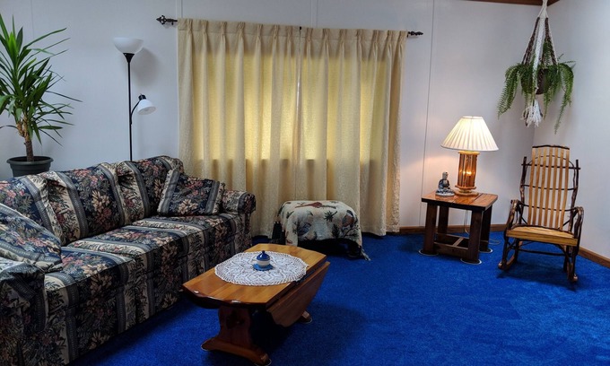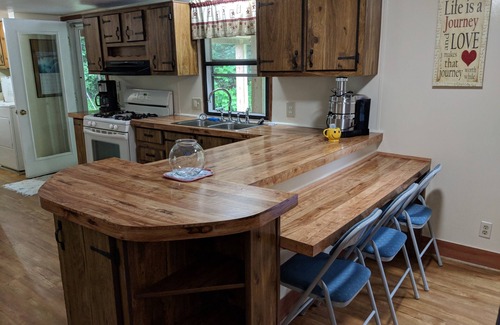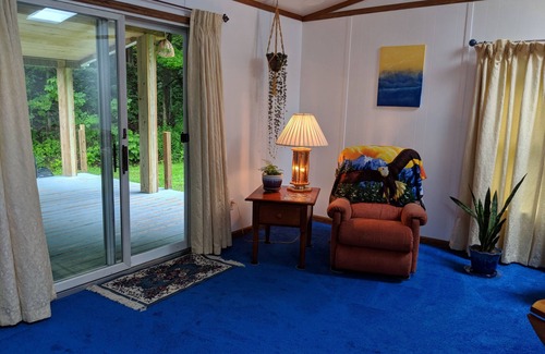 This very peaceful, welcoming 2 bed, 2 bath, property in the country is very unique and conducive to a rejuvenating relaxing stay. Sleeps a total of 6 people using the queen bed in the master bedroom, a full size and twin size bed in the second bedroom and a twin size fold out ottoman in the living room.The babbling brook with picnic table and campfire setting are just one of the many extras. This home has been totally renovated, is very clean and fresh. The location is only minutes away from Lily Dale, Fredonia, Lake Erie Beaches and so much more for a great stay and value.