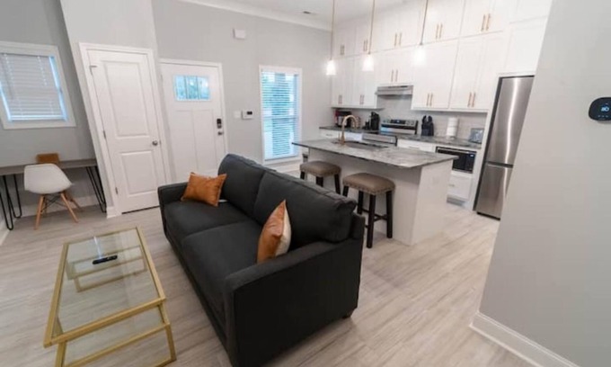 The Kennedy designed specifically for extended business travelers, relocating employees, healthcare employees, displaced homeowners, and vacationers. Each one bedroom/one bath, fully furnished rental has state-of-the art technology which includes keyless entry front door, smart thermostat, smart TVs, high-speed internet, a security-coded, walk-in bedroom closet, and security cameras.