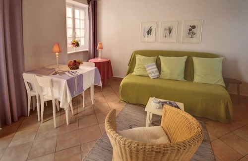 Your duplex is composed upstairs of a double bedroom, wc washbasin, and on the garden level an open kitchen, living-dining room with sofa bed.