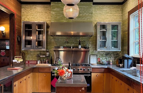 - Catering-Friendly Kitchen: The chef-inspired kitchen is equipped with high-end appliances including a Viking 6 burner range, wine fridge, and ample prep space, ideal for catering or group cooking activities.