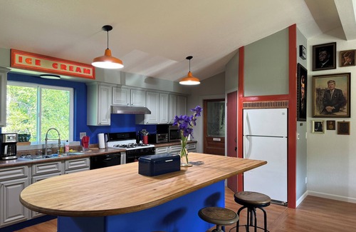 - Charming Amenities: Unique touches like vintage decor, mid-century furniture, and cozy bedding create a warm atmosphere, while Malin + Goetz bath products elevate your guest experience.