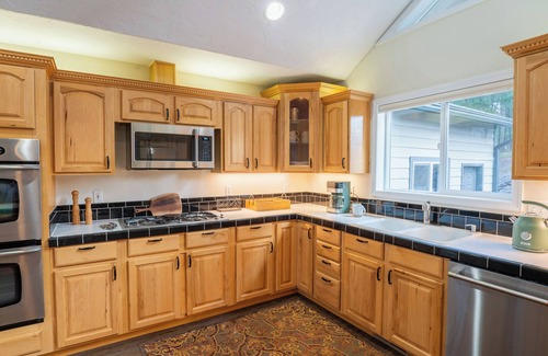 Kitchen: Fully appointed kitchen with brand new GE appliances: full-sized refrigerator, gas cooktop, double oven, microwave, dishwasher, coffee pot, toaster and electric kettle.