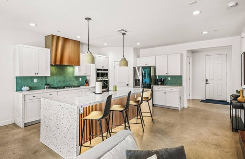 - Fully Equipped Kitchen: The spacious kitchen is designed for entertaining, complete with modern appliances and plenty of seating, allowing you to prepare and share meals with ease during your stay.