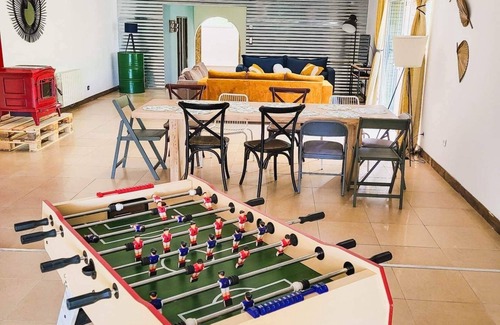Relax in the garden (enjoy the outdoor furniture!) of this 2368-sq-ft vacation home, which also offers a BBQ grill. As for the great indoors, you can try your hand at foosball, or enjoy the free WiFi and TV.