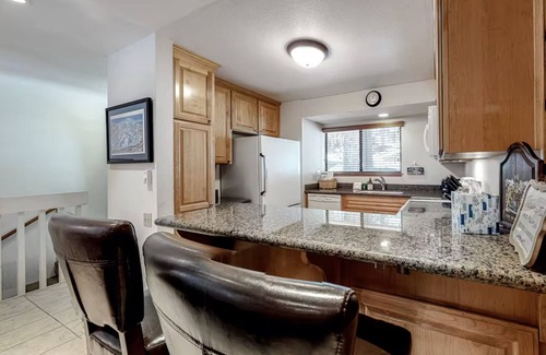 Enter on the top level where you will find the updated kitchen fully equipped to prepare your favorite family recipes. Dine at the breakfast bar or eat family style at the dining table. After an exciting day in the snow relax in the living room and watch some tv or play a game with your family. Unwind with a hot shower and fall into one of the luxuriously made queen beds while the kids have fun sleeping in twin sized bunk beds.