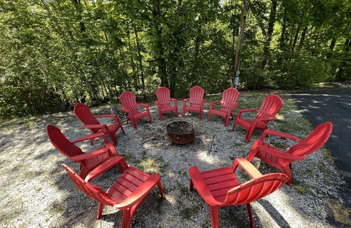 Inside THE LAKE HOUSE, you'll find a wealth of amenities to enhance your stay. The elegant master bedroom boasts a king-sized bed, an ensuite bathroom, and French doors leading to the back deck. Delight in our well-appointed kitchen featuring modern black stainless Samsung appliances, perfect for catering to your wedding guests. Enjoy evening gatherings around the fire pit, unwind on the spacious outdoor patio, or have fun with games available including a ping pong table and a game table for card games. With high-speed wireless internet and multiple flat-screen TVs scattered throughout the property, you’ll have all the comforts you need at your fingertips. Additionally, guests can take advantage of the outdoor gas grill and ample parking options for boats, ensuring every aspect of your stay is seamless.