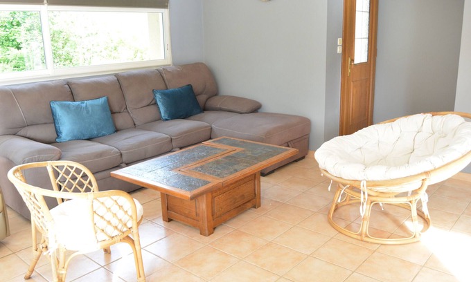 Designed to comfortably accommodate up to 6 people, our house can accommodate up to 8 travellers thanks to its convertible sofa! Enjoy a spacious living room, perfect for socialising, a generous dining room for shared meals, and a reading corner with library (Collaborative library: "come with your books, leave with ours") for moments of peace and quiet. The modern, fully-equipped kitchen opens onto an intimate terrace, perfect for sunny breakfasts or dinners under the stars.