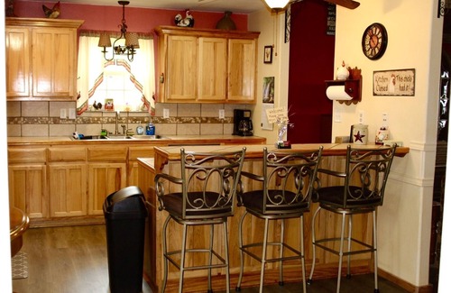 The Lake House is located on a quiet cove where you are welcome to bring your boat or Jet Ski, with plenty of room to moor on the dock or pull up on shore. We do have neighbors on both sides, but none are permanent residents. The dock also has a sink to clean the fish you catch which may include catfish, bass, crappie and several others. There is also plenty of waterfowl to watch and lots of wildlife around, to include deer, hogs, squirrels, raccoons, armadillos, etc. This is in the country so please expect to see some critters and bugs. We do have a fire pit where you can roast marshmallows or just sit by the fire. We have added a sitting area with lighting around the fire pit to enjoy the evenings by the lake. A total must while you are here is the beautiful sunset every evening!