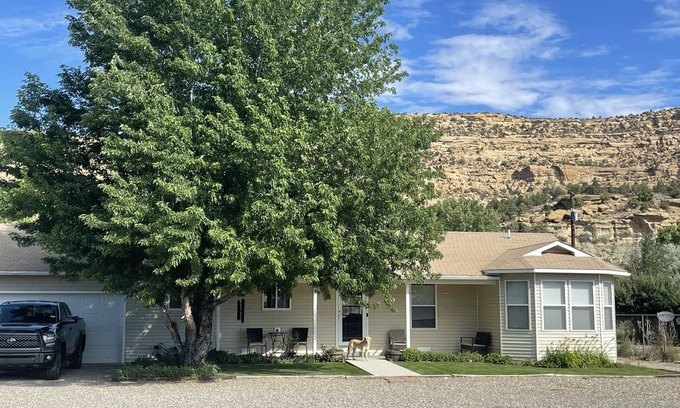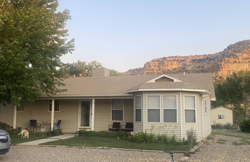 Three Bedroom 2 Bath on the San Juan River - right below quality waters. River access is directly behind home. Walking distance to Abes Store, fly shop and restaurant and to the Sportsman Store and restaurant. House has recently been updated with new floors, lighting and furniture. evaporative cooler, free wifi, large TV with DVD player. The backyard is newly landscaped and includes a 12' X 20' deck that overlooks the river. This area is perfect for bird watching and stargazing. There is also a 12' X 16' aluminium gazebo with table and chairs. Fully equipped kitchen, outdoor grill. Plenty of parking.