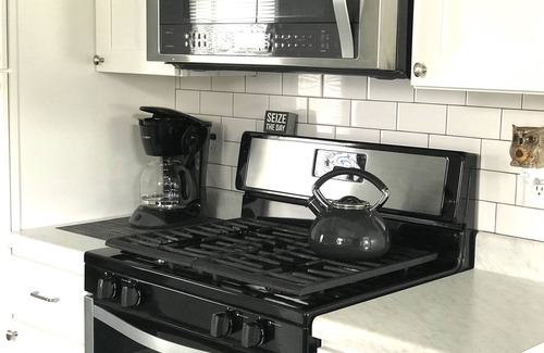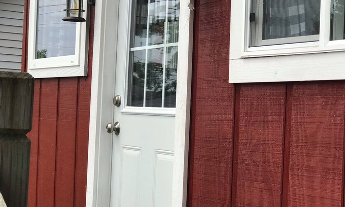 The decor reflects an eclectic, comfortable style where guests can relax and unwind. When selecting the exterior color, the owners decided to embrace the barn shape and painted it barn red. The landscaping is manicured each week and continues to evolve with the addition of hostas, daylilies, and hydrangea. Two mature Crimson Maples shade the side yard and cement patio.