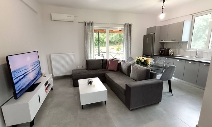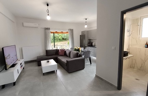 The apartment is very close to the Corfu town and the most beautiful beaches also. The view from the balcony of the apartment is stunning. Very quiet and relaxing area. Free parking area and big garden. The way to the lake is private and only 2 minutes walking.