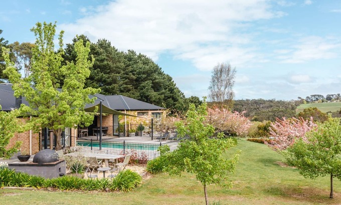 Unwind and rejuvenate at this serene 25-acre retreat, where luxury and tranquillity come together. The elegant residence features four spacious bedrooms, two bathrooms, and two additional toilets. You'll find a study, cozy lounge, vibrant games room, and expansive open-plan living areas. The highlight of this property is the breathtaking entertainment deck and pool area, offering picturesque views of the northern valley, plus a private tennis court for your enjoyment.
