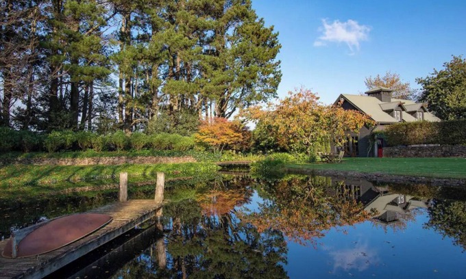 The lake was created from a flat paddock and it is fully lined as the rich topsoil is so deep there wasn’t any clay to hold water, a jetty was created and a small boat that belonged to the owner's grandparents. Wild ducks call the lake home and there are baby ducklings scooting around every spring.