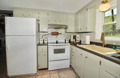 Step outside to embrace the great outdoors with a fire pit, perfect for evening gatherings, and a patio equipped for dining. Fire up the BBQ or Blackstone for a delightful cookout, or retreat to the balcony for a tranquil seating experience. Cornhole and other outdoor games provided! This enchanting space invites you to relax, rejuvenate, and make unforgettable memories.