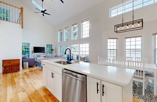 The moment you step inside The Lakewood you will feel at home. Showcasing high ceilings, floor-to-ceiling windows, and comfortable furnishings, the spacious living room offers a peaceful spot to sit back and stream a show, or gaze out at the gentle waves. The chef's kitchen comes well-prepared to host home-cooked meals, and the home's separate laundry room keeps chore time at bay.