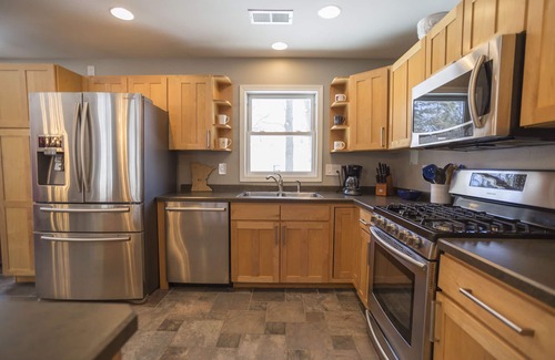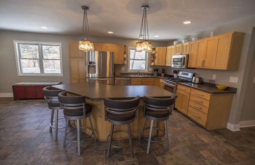 The home has an open floor plan with large rooms. You will be able to relax comfortably during your stay. The master bedroom has a king bed and flat screen TV. A queen bed and twin over twin bunk beds are in the second bedroom. The lower level has a twin over full bunk bed to accommodate 3 additional guests.