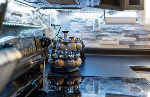 room completed with a 55" television, and a kitchen that encourages home cooking with its