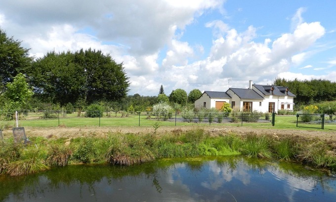 A wooded and fenced 4000m2 with its natural lake and sun bathing beside unusual allow you to spend your holidays in peace.