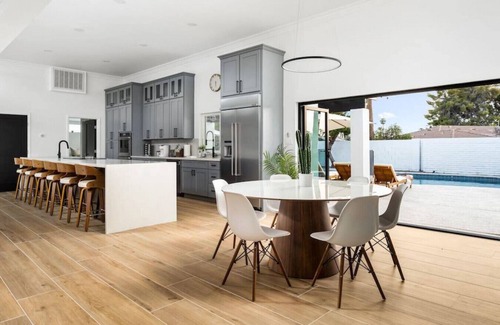 As you enter the home, you'll be wowed by the wide open floor plan. The 16' kitchen island with quartz waterfall countertops will likely be the first thing you'll notice. If not, it may be the 12' bifolding Nanawall that opens up to the private, luxurious backyard oasis. OR maybe it'll be the 85" TV that catches your eye. Either way, you'll know that you just stepped foot in the space that will be home to incredible memories.
