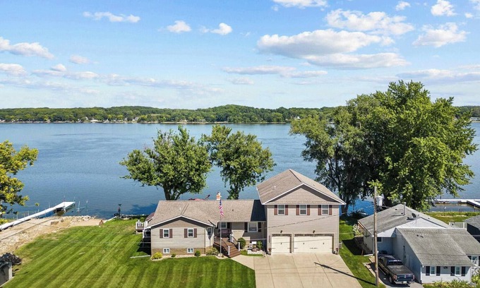 Discover this terrific 4-bedroom, 3-bathroom gem directly on the Mississippi River in LeClaire, IA! This enchanting house boasts unobstructed river views from almost every room, with private river access and docks.