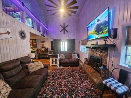 Providing barbecue facilities, THE LEGEND OF ASKA- Blue Ridge Cabin, River & Mtn views, Hot Tub, Game room features accommodations in Blue Ridge. This property offers access to a patio, a pool table, free private parking, and free Wifi. The vacation home has an outdoor fireplace and a hot tub. Featuring a balcony and mountain views, the spacious vacation home includes 5 bedrooms, 3 living rooms, satellite flat-screen TV, an equipped kitchen, and 3 bathrooms with a walk-in shower and a hot tub. Featuring air conditioning, this unit has a dressing room and a fireplace. The property has an outdoor dining area. Guests at the vacation home can enjoy cycling and fishing nearby, or make the most of the garden. Chattanooga Metropolitan Airport is 81 miles from the property.