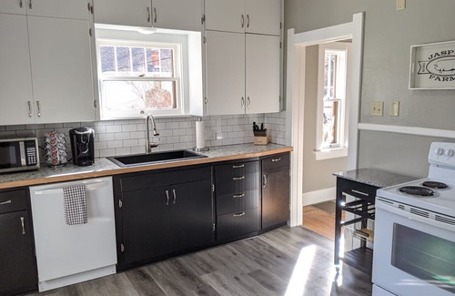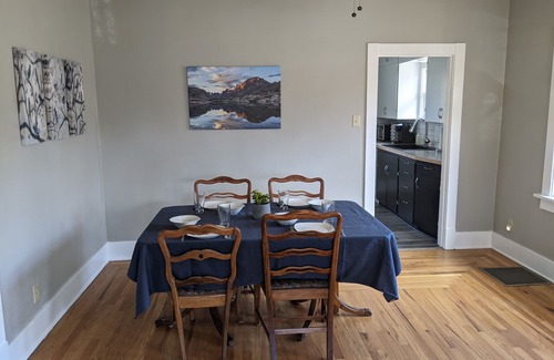 Welcome to the Lewis House--Upper Level! Located one block from the University of Wyoming, in a quiet neighborhood with access to all of Laramie. This is a newly renovated fully independent apartment that is sparkling clean. It features a private front entrance, a family room with a Smart TV and a completely equipped modern kitchen. Both bedrooms feature new queen beds. Free Wifi. It is walking distance to a wonderful local coffee shop. Dogs are welcome with an additional charge of $10/pet/day.