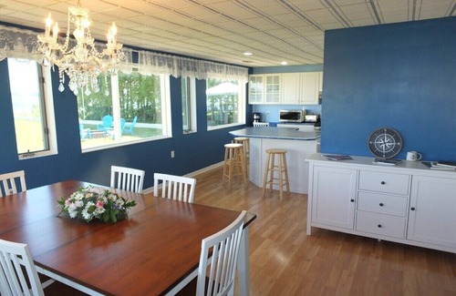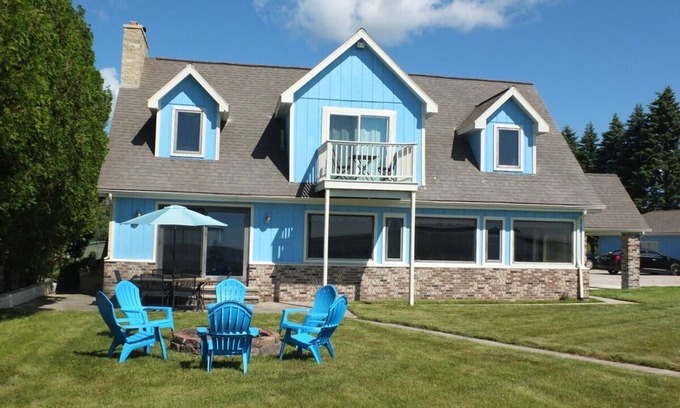 This is a gorgeous lakefront vacation rental home that is right on Lake Huron in Alpena, Michigan! It has 4 bedrooms, 2.5 bathrooms, and sleeps 10. It has a large and gated yard for kids and dogs to play! The rental of the house also includes the use of 2 kayaks and the use of the boathouse on the property, so you can walk out the front door and immediately be in your boat and on the lake! Please note that a liability waiver must be signed before using the boathouse and/or the kayaks.