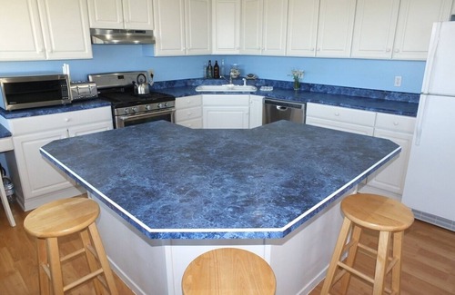 * The house features a modern, large, and well-stocked kitchen with a gas range as well as a gorgeous view of of the lake while cooking.