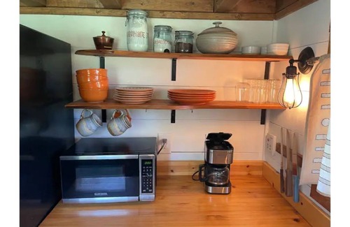 The Lily Pad is located on a 34 acre homestead/farm. This sweet tiny home is surrounded by beautiful trees and wildlife. The well lit space is perfect for almost any occasion. A quick getaway, a peaceful space to practice your art form, or a lovely place to unwind and recharge.
