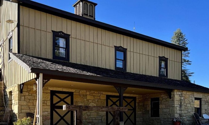 Located on 120 acres nestled in the valley of Merry Christmas Lane. This refurbished limestone horse barn offers a hot tub, firepit, Game room with bar, pool table, Ping Ping, pac-man, board games, karaoke and so much more. Great outdoor views of the cattle grazing next to our historic covered bridge that reaches across the winding brewery creek. Just steps away from walking trails, ATV, snowmobile and horse trails. You will love this laid back country atmosphere while enjoying only a 5-10 minute walk to Historic Mineral Point Main Street where you can enjoy dining and shopping all day long. Mineral Point is the modern day Mayberry! Sweet people with a feeling of safety that most cannot even imagine!