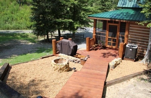 Its a rustic log cabin, totally handcrafted. Just below is the Chowan River and at the mouth of the Albermarle Sound. It is full of White Perch and you can go crabbing. Fire pit outside for roasting marshmallows.Its has a walk way off the back porch that will take you all the way to the river. It is very good for exercising.Firewood is provided for the fire pit.There is also a fire pit with some wood on the beach by the pier. There is a golf cart for those who choose to ride to river instead of walking. The property is located 12 miles from Edenton off of highway 45 on the Chowan River.
