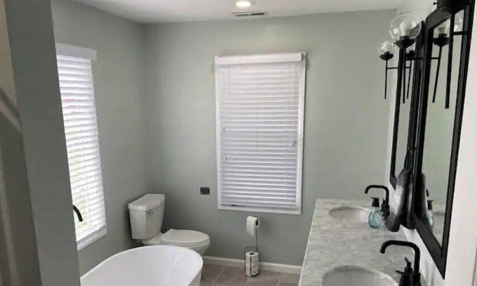 Relax with the whole family at this peaceful place to stay. King size bed in master bedroom and garden tub in master bath.
