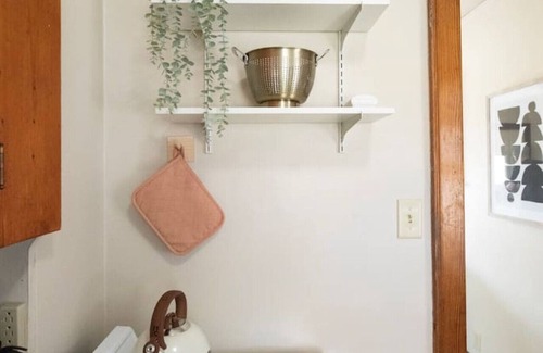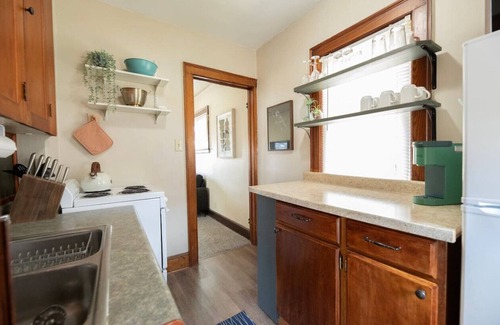 Welcome to The Little Green Bean! Nestled on a cozy corner accross from a park, this 2 bed, 1 bath cottage is bursting with charm. Step inside and discover a cute space filled with character and comfort. Relax in the snug living area, whip up a meal in the fully equipped kitchen, or enjoy a peaceful night's sleep in one of the comfy bedrooms. With its vibrant decor and unique touches, The Little Green Bean is the perfect spot for a memorable getaway.