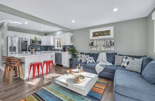 The living room has a Smart TV equipped with Netflix and Chromecast, for you to enjoy from our large comfortable couch as you relax and unwind after your adventures. The house is also equipped with a Samsung Hub fridge which allows you to explore recipes, stream your favorite content and entertain — all right from your fridge.