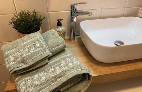 While you're here, you can enjoy all the comforts of home and more, including a bidet and air conditioning, as well as a dryer and bed sheets. Other amenities include toilet paper.