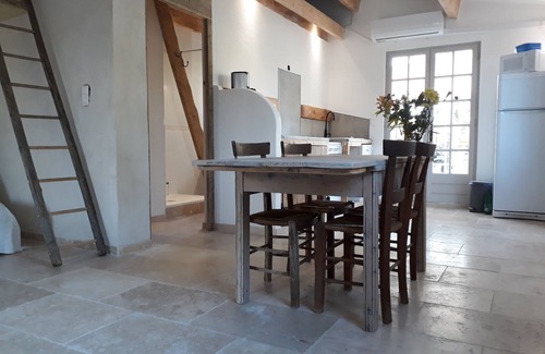 Magnificent little house located in Drôme Provençale; surrounded by vineyards and lavender 200 meters from the medieval village of Chamaret and 5km from the village of Grignan and its castle which belonged to Madame de Sévigné. Not far from the village of Richerenche; the capital of the Black Truffle and its Winter Truffle market and its museum. The accommodation restored with taste and character (except facade) has a swimming pool and a large plot. This accommodation is ideal for a couple and two children or two couples. Come and discover the many medieval villages; museums; walk the marked paths which will lead you to the heart of the oak forests and across fields. The house is at the end of the municipal road; the rest of the way gives access to a large Farm. Because the accommodation is surrounded by fields and gardens, there is of course at times the presence of farmers who maintain their land. The swimming pool is open from the beginning of June to the end of September.