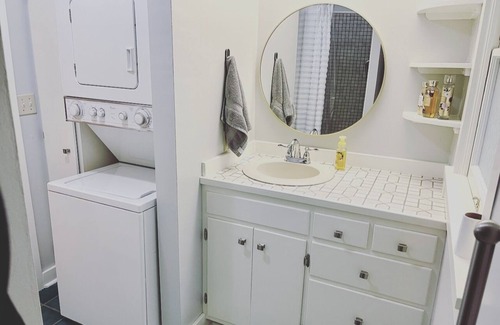 ⭐Bedroom 2: queen bed with access to the bathroom in the hallway. This hallway bathroom includes the washer/dryer with a bath/shower combination. It is also stocked with towels.