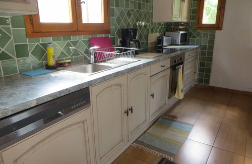 • main room with American kitchen, fully equipped (dishwasher, fridge, oven, toaster, electric hob and raclette machine), satellite TNT.