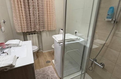 While you're here, you can enjoy all the comforts of home and more, including WiFi and a bidet, as well as air conditioning and an ironing board. Other amenities include laundry facilities, towels, soap, and toilet paper.