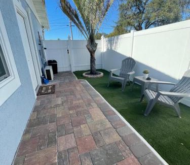 Featuring a garden, The little Paris suite features accommodations in Tampa. This apartment offers free private parking, a 24-hour front desk, and free Wifi. Outdoor seating is also available at the apartment. Providing access to a patio, the air-conditioned apartment consists of 1 bedroom. Offering a terrace with garden views, this apartment also features a satellite flat-screen TV, a well-equipped kitchenette with a microwave, a toaster, and a fridge, as well as 1 bathroom with a shower and a hair dryer. This apartment is allergy-free and non-smoking. Raymond James Stadium is 2.9 miles from The little Paris suite, while Amalie Arena is 7.9 miles from the property. Tampa International Airport is 1.2 miles away.