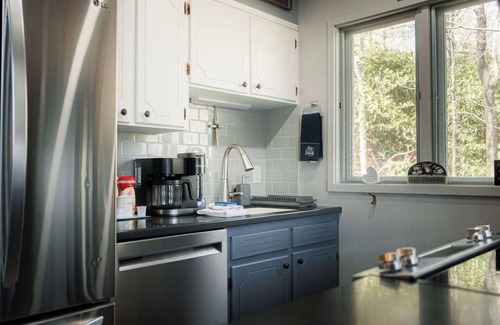 Enjoy comfortability on the main level with a cozy open-concept living and dining room bathed in the natural lighting of floor-to-ceiling windows! Cook to your heart's desire with our fully functional kitchen*. Cozy up in Bedroom #1 with two twin-size beds, decorated to satisfy any age traveler and snuggle in to watch a movie on the Smart TV! Freshen up in Bathroom #1 with a walk-in shower, or throw a load of laundry in the washer and dryer.