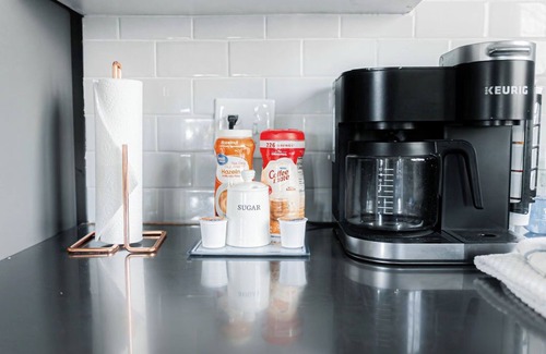 - dish rags, trash bags, paper towels, soap, sponges, toaster oven, Keurig Coffee maker (2 K-cups supplied), plates, cups, wine glasses, wine opener, mugs, can opener, grilling utensils, silverware, ice cream scoop, mixing bowls, hand mixer, cookie sheets, pots, pans, skillets, cutting boards, and more!